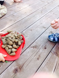 6. Задание 6 -найти шишки (планировалось по 6 штук), но мальчишки нашли больше + еще цветочки, а потом они все эти шишки перекидали в пруд. И тогда мы уже пошли домой, т.к. и так провели в парке почти четыре часа на солнцепеке.