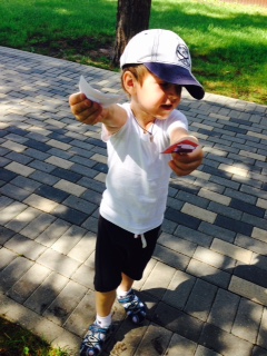 4. А вот потом у нас случился форс-мажор - задание 4 - это 4 разноцветных бумажных самолета, которые нужно запускать. На этом задании мы застряли на час, мальчишки же. Запускали-запускали-запускали. Было очень забавно, дети кричали ready? - flap your wings! Com'on!