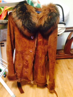 кортокая шубка-дубленка saggitta, цвет коричневый (молочный шоколад), с меховой опушкой и поясом, на пуговицах. Б/у несколько раз.