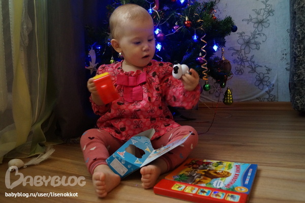 Еще собачка с домиком и книжка с голосами животных. Катя так смешно крик обезьяны копирует, ну точно мартышка маленькая. Я подобную книжку пыталась в магазине недавно купить, даже в корзину ее уже положила, но в последний момент убрала (может интуиция? посылка была на тот момент у нас, но что там не знали)