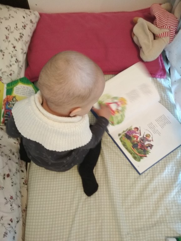 Говорю "Пошли читать!" - залазит на кровать, валяется и ждёт меня.