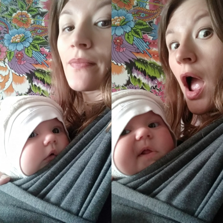 Она сама перевернулась через правое плечо. Вчера мы переворачивались на пеленальнике в поликлинике, но я ее немного подталкивала. А сейчас переодевались утром и она сама. Офигеть вообще) удивительно!