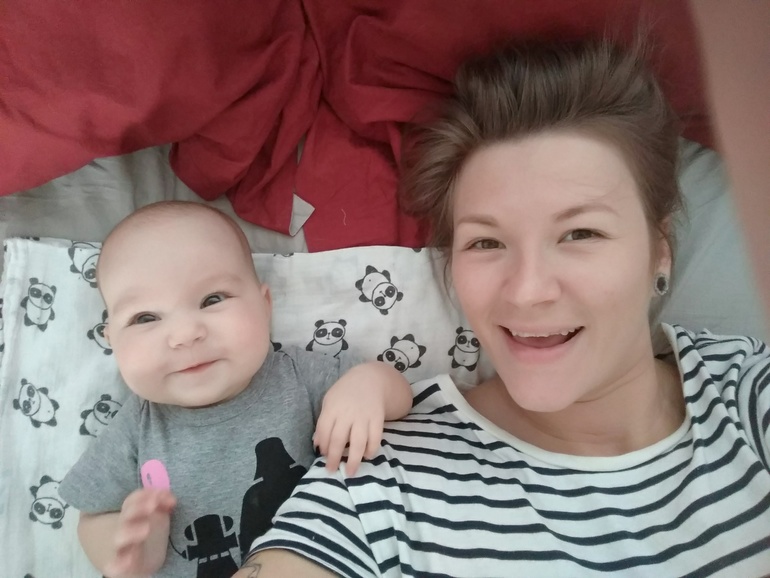 И вижу, что до ребенка доходит, что если погремушку выпустить из рук, то она гремит! Это открытие месяца было)) я ей даю погремушку, она ее выпускает, слушает и веселится)) такая потешная) но пока всерьез полагает, что это работает только у меня на животе)