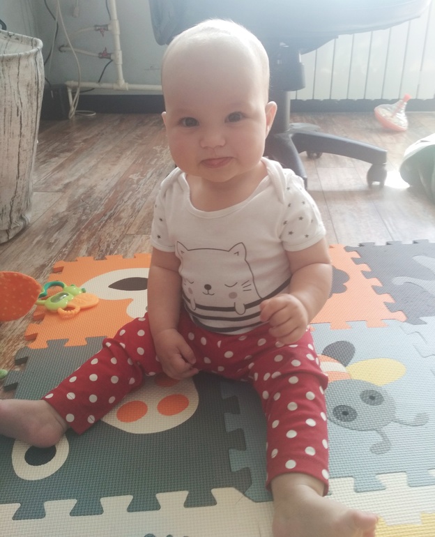 - любит прыгать в переноске, на животе у меня или папы, хватать прохожих за одежду, когда ей с выражением читают или поют, одуванчики, мыльные пузыри, солнечных зайчиков;