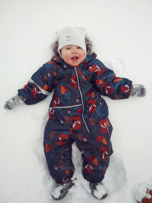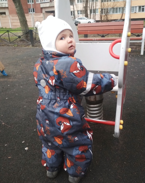 Вышли мы впервые в зимнем комбезе и валенках и гуляли в этом обмундировании по площадке.