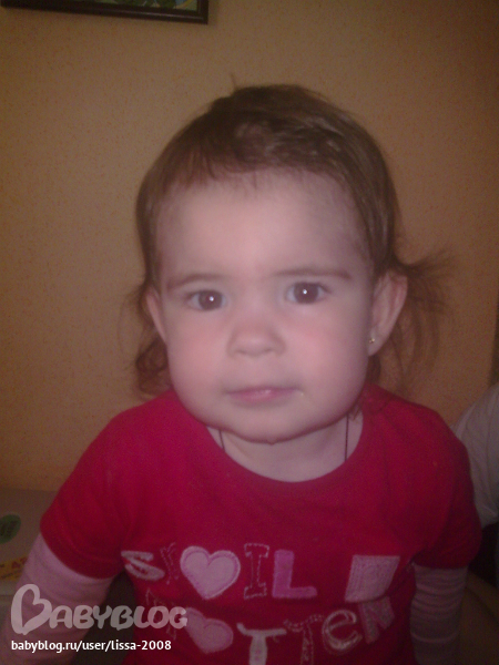 А как она хвастается теперь своими ушками, это умора...вчера целый день ходила и говорила нам всем "ВАУ" (это чтоб мы тоже так ей говорили, напрашивалась на восхищения ею)))). И ещё целый день повторяла:" Пик-пик и всёёёё" (это я ей в салоне так говорила, что типа не бойся, сейчас тётя серёжки оденет, пик-пик и всё))))