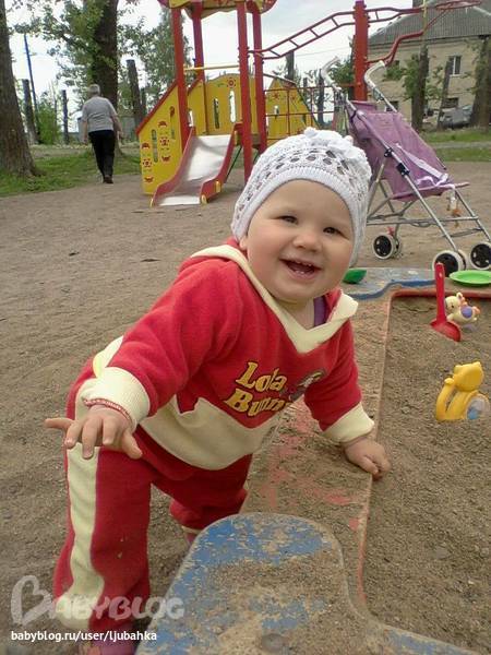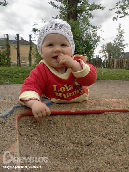7) Понимает слова - машинка, ляля, мячик - приносит эти игрушки если попросить.