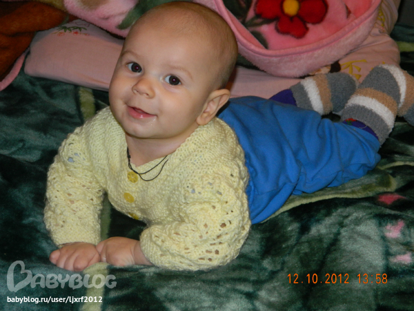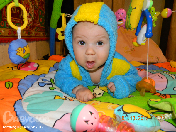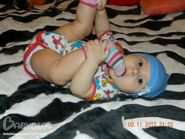 Мой любимый мальчик уже очень активный.. переворачивается во все стороны.. с любого положения.. имеем 2 нижних зубика.. с 5 мес. начали кушать разные пюрешечки и пить соки.. тянет ложку себе в ротик.. сердится когда я сама ем, а не ему даю (но это больше развличение чем полноценное питание.. основная пища мамина сися)) Спит исключительно со мной.. смеемся.. улыбаемся.. гуляем.. все как у всех!!!!!!!!