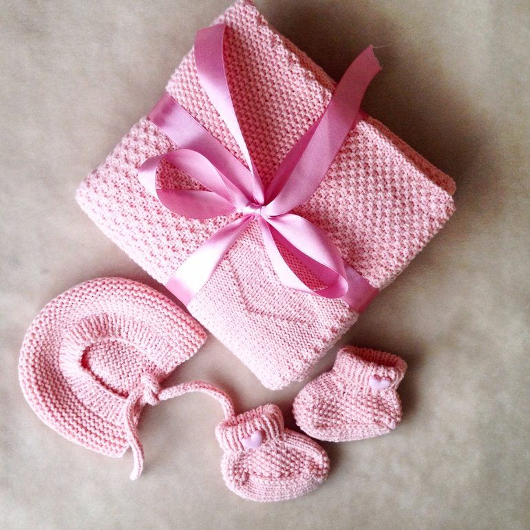 Комплект из хлопка с полиамидом. Плед размеров 1*1,чепчик и пинеточки.
