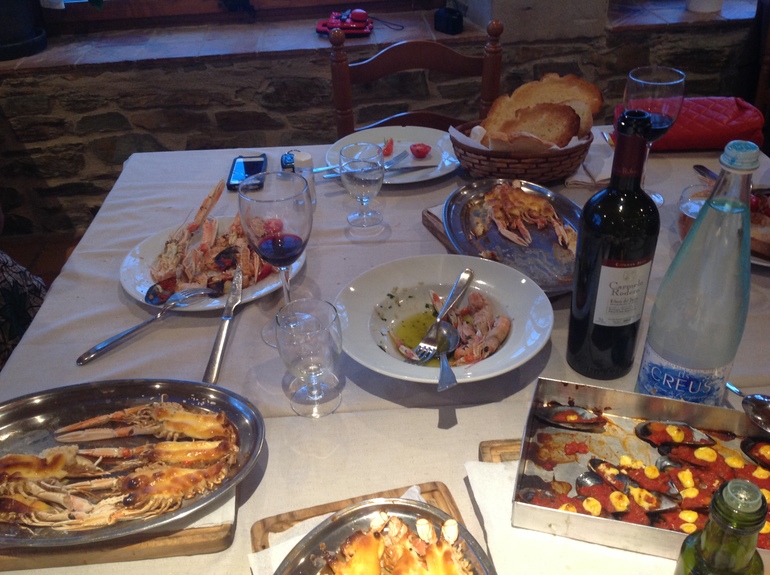 А еще мы ездили в удивительное поместье, которое хозяин построил на месте развалин еще римских времен в Испании, и превратил дом в ресторан, где готовят из того, что выращивают сами, за исключением рыбы, за которой каждое утро ездят на известный рыбный рынок в Паламосе. Хозяина зовут Пако, и он показал нам свои огороды, оливковые сады, виноградник, всякую живность и виды окрестностей, от которых захватывает дух. Угощал какими-то умопомрачительными морепродуктами, мне досталась рыба-черт, я чуть не умерла от восторга.
