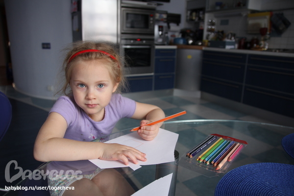 Сегодня я одна с двумя пупсами - бабушка на работе, муж в командировке. И вот на меня напал приступ золушки - надраила квартиру, поменяла постельное белье, еще наглажу сегодня (домработница в отпуске, а я больше не могу выносить бардак). Дима начал было голосить, но уснул под шум пылесоса :) Лина нарисовала Смешариков.