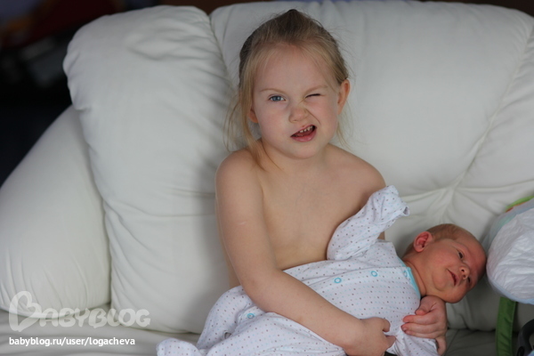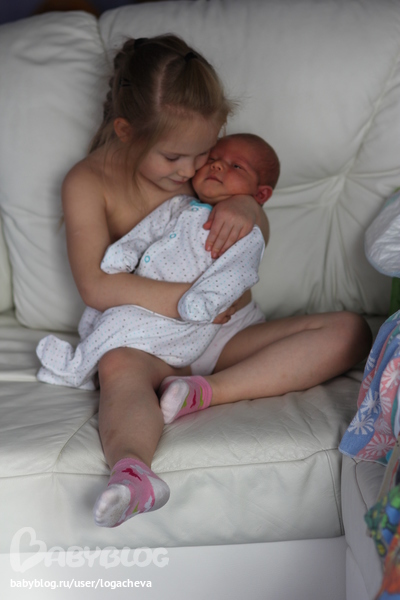 Она стала "папина дочка". Оно и понятно - они в одинаковом положении и отлично друг друга понимают. Мамы на них не хватает, а что делать с новым младенцем пока не ясно.
