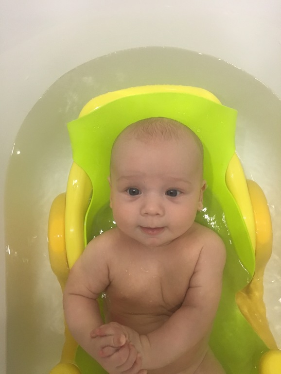Палец во рту. Но я зубы не жду рано. У Глеба в 8 месяцев первый вылез . А массаж я сама захотела, записала, как только родился. А потом врач уже сказала, что есть небольшой тонус в спине и шее и массаж не помешает.