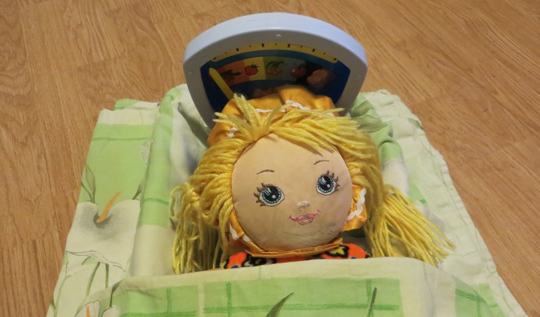"ложишься и всё", действительно удобно)) У нашей куклы, судя по датчику, температура ниже нуля ... При желании можно было бы обратить на это внимание Стёпы, он бы ее полечил)). Но дело было перед сном, не стала ему добавлять забот.