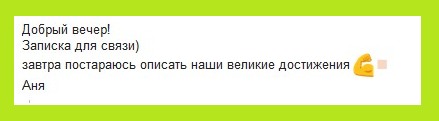 Из крайних пока писем в нашей переписке. От 10 июля, очень мне нравится смайлик про достижения ))