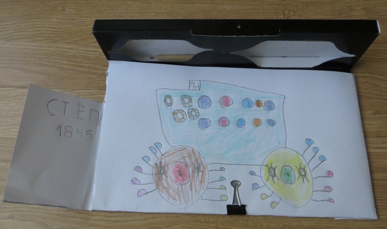 "Вот готово, это робот Живчик. Потому что выжил... А его брат нет(("