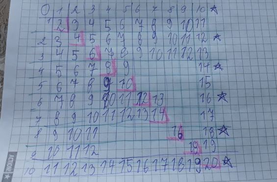 Потом пошел по диагонали 1+1, 2+2, 3+3 и т.д.