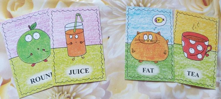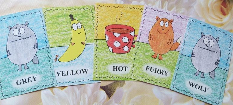 Поиграли в "смешные парочки". Достаем из колоды по одной карте, пока прилагательное не встретится с существительным.