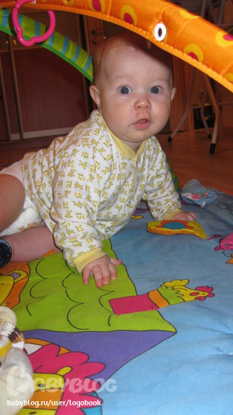 а вы на фитболе занимаетесь??я ему всю благодарность отдаю за развитие малыша,не знаю,как только с 4 месяцев стали на нем по нескольку раз в день кататься,так буквально через недельку и на четвереньках стояли,и ножками упираться стали хорошо)