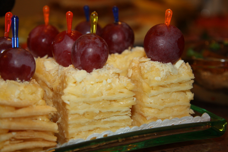 3) Закусочный Наполеон. С сыром и виноградом или с малосольной рыбой (еще не решила)