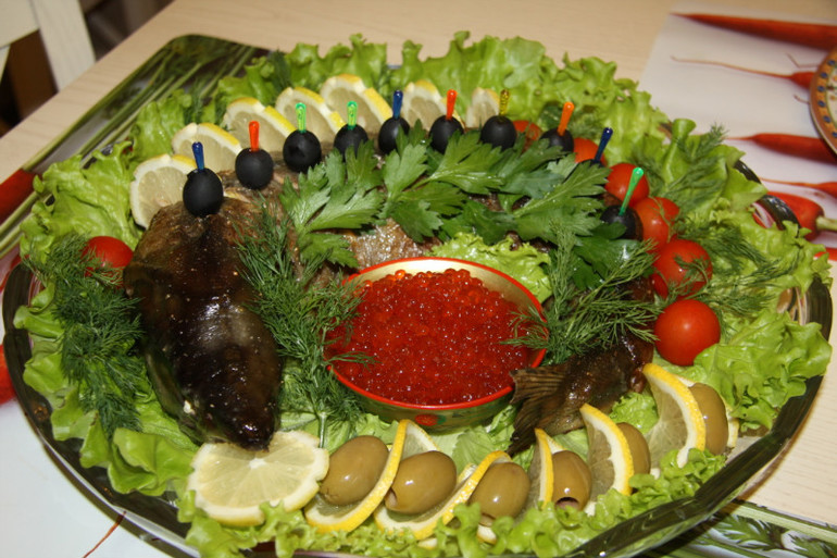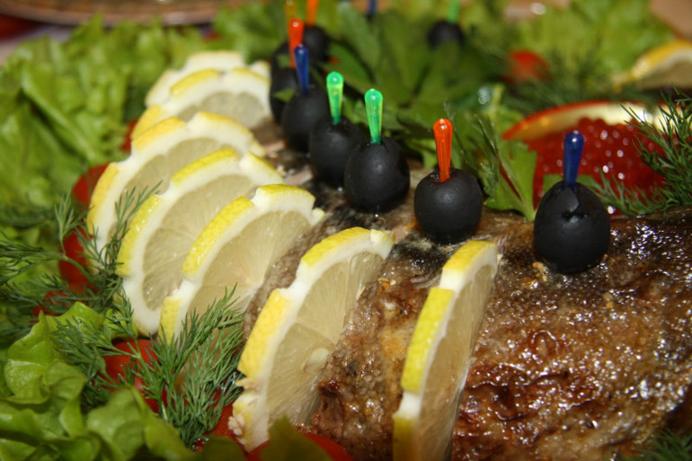 2) Фаршированная рыба. Едим ее холодной. Любят все)