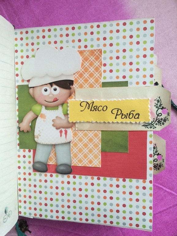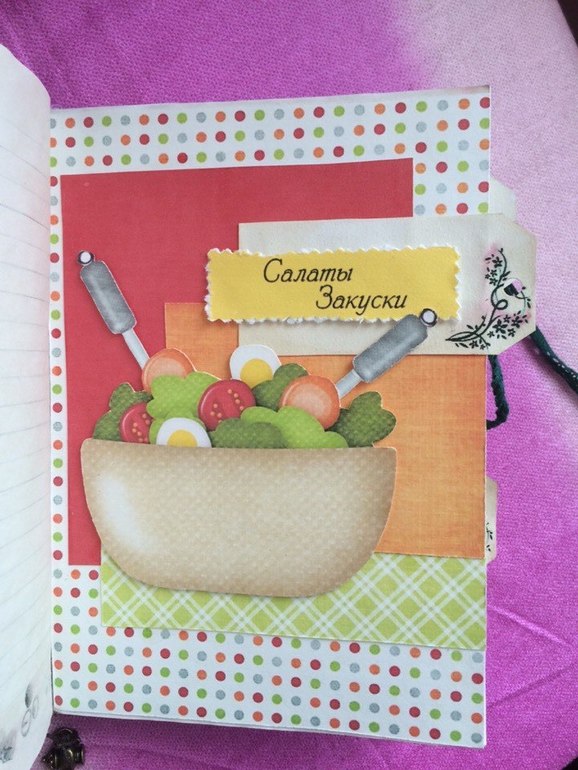 С обратной стороны каждого разделителя есть кармашек, чтобы можно было вложить листочки с рецептами, вырезки из журналов, полезную информацию