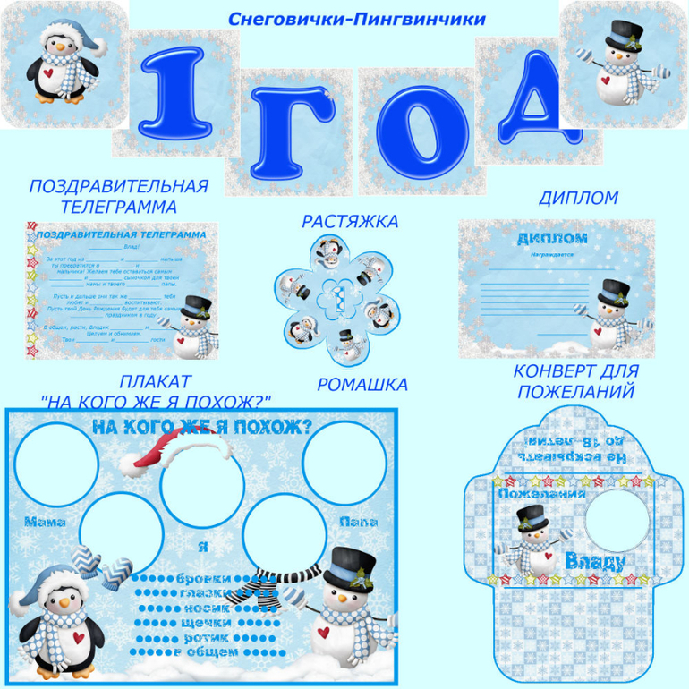 Предлагаю Вашему вниманию набор для празднования дня рождения со Снеговиком и Пингвинчиком)