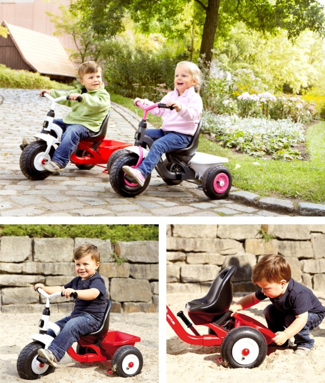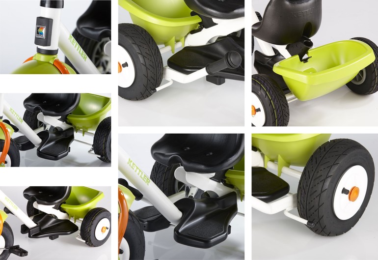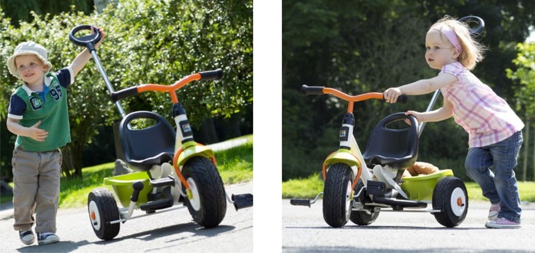 - Отключение вращения передних педалей для безопасности ребёнка при использовании в режиме толкания