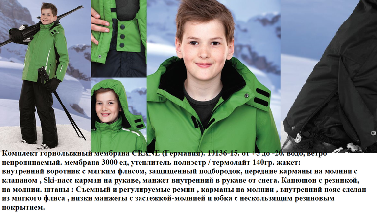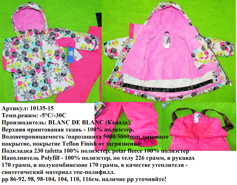 ЗИМА. Blanc de Blanc (КАНАДА).Зимние комбинезоны Blanc de Blanc (Канада) имеют в качестве утеплителя - синтетический материал тек-полифилл, произведенный из волокон, имеющих форму пружин, которые не сообщаются между собой и содержат полости, поэтому изделие хорошо держит форму и сохраняет тепло.. Непромокаемый. Непродуваемый. Дышащий. Прочный. Верхнее покрытие мембрана WR. Водонепроницаемость ткани 5000 мм. Удобный крой, не сковывает движения. Флисовый подклад на груди и спине. Ветро/снего защитная юбка по низу куртки . Утяжка-липучка на манжетах. Ветрозащитная застежка, защита подбородка. Регулируемые лямки на брюках. Защита от снега (снегозащитные гетры) по низу брюк. Два внешних кармана на липе. Брюки внизу можно загнуть без проблем на запас . Внутренний карман. Место для написания имени.