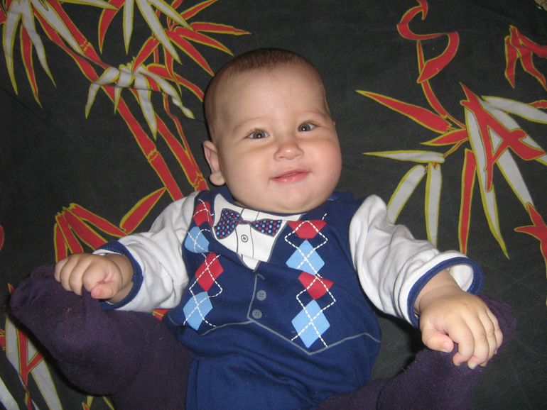 отвлекается на имя своё, очень улыбчивый мальчик, очень радуется сестре, на её кривлянья очень задорно, заразительно начинает хохотать громко))))) мы прям усываемся над этим)))) очень смешной смех))))