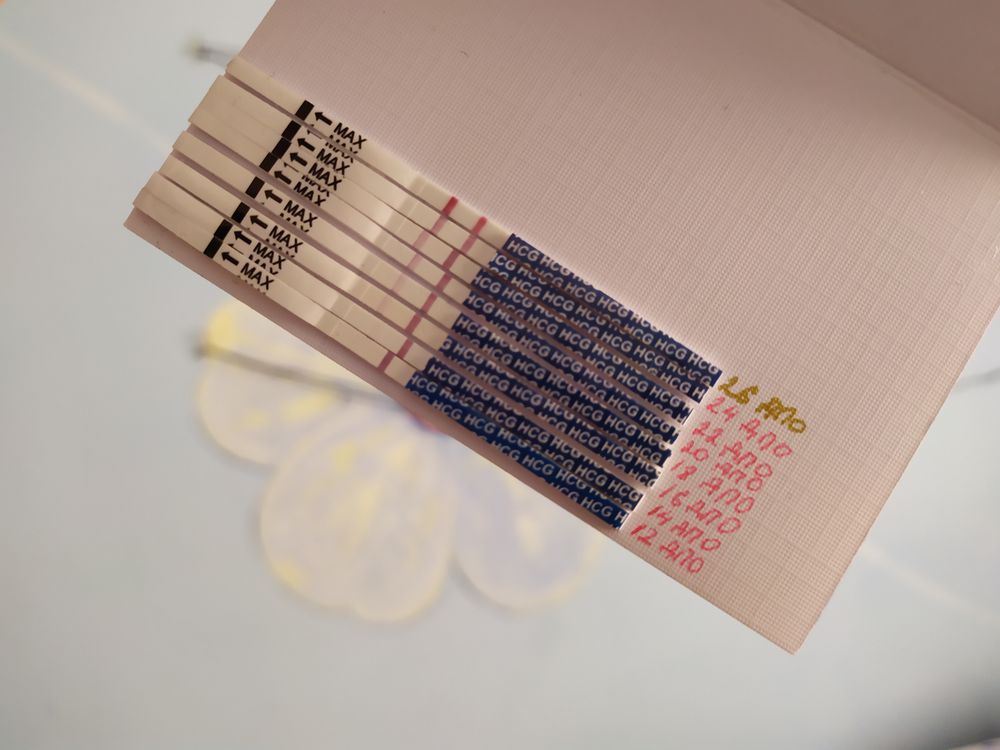 На третий день задержки, мне улыбнулась слабенькая полосочка на тесте: