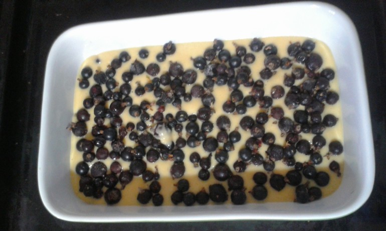 400мл сока, яйцо, гр.150 сахара, муки, сколько возьмет до консистенции сметаны. Слой теста, слой ягод...