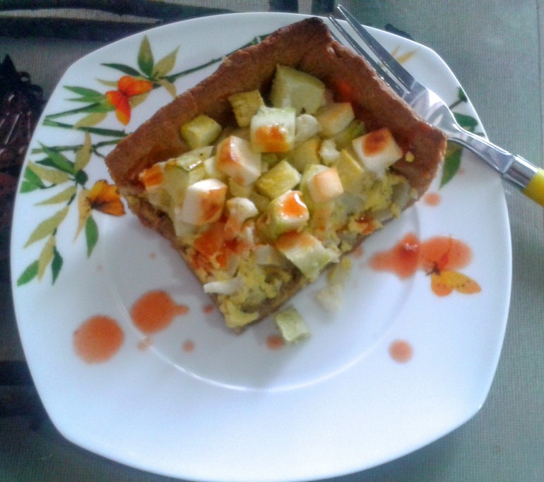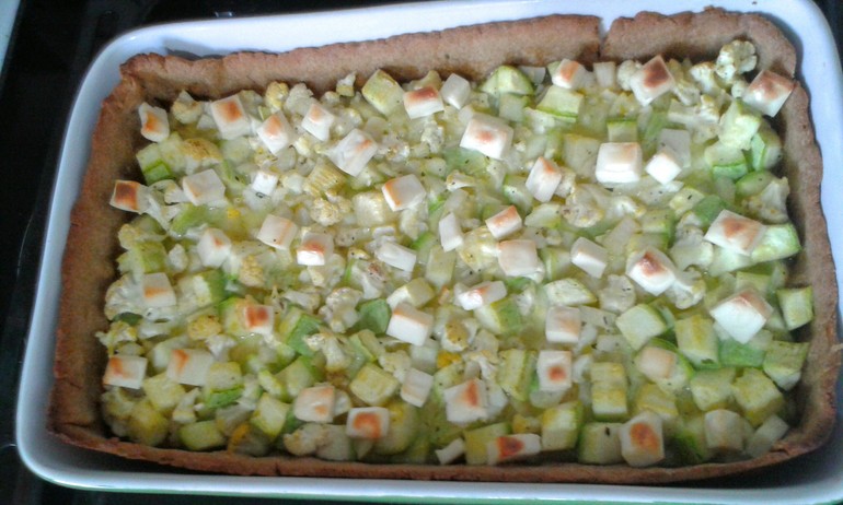 Начинка: цветная капуста, кабачок, мягкий творог. И сверху брынзы накидала.