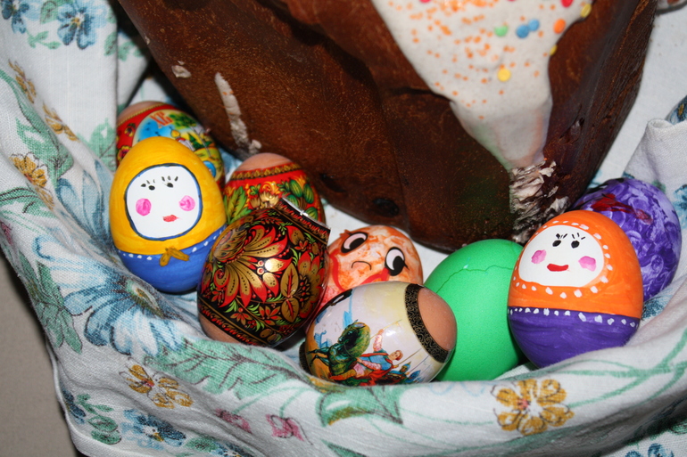 4 яичка у нас в гуаши))) Вот наверное зря мы это сделали, но так хотелось красивых матрешек нарисовать) Красивых не получилось, но я старалась)))
