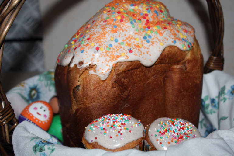 Еще приготовили кексики твороженные и, конечно же, покрасили яички) Получилось не ахти, зато сами)