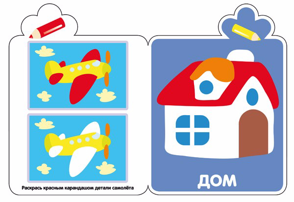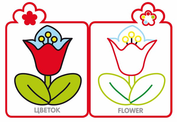 В них ребенок найдет цветовые подсказки, большие области для раскрашивания, подписи под рисунками на русском и английском языках.