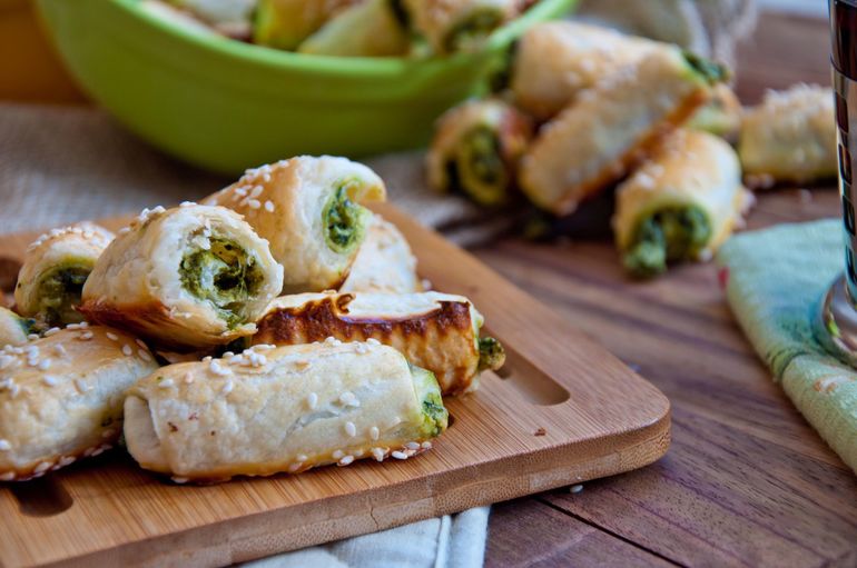 Слоеные рулетики со шпинатом и сыром