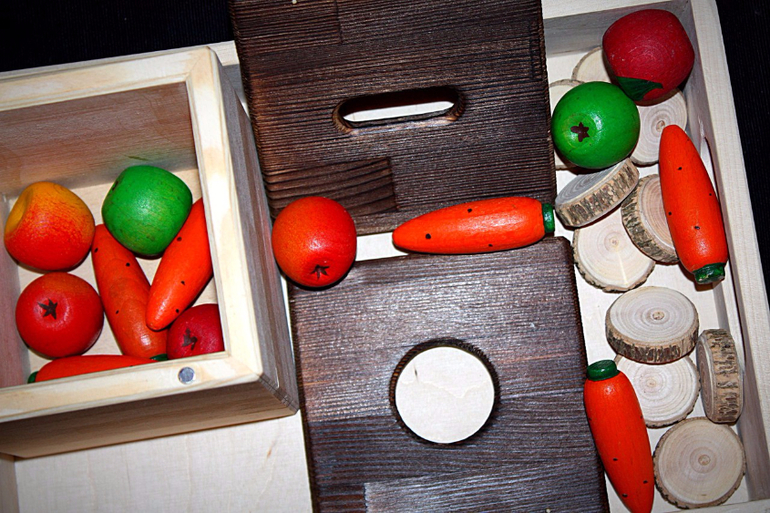 Сам коробок очень вместительный! Поместились и спилы и морковки и яблочки!