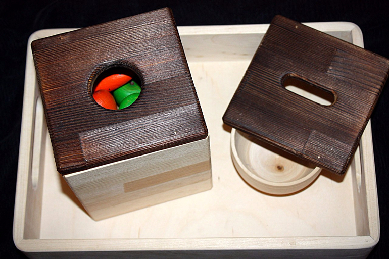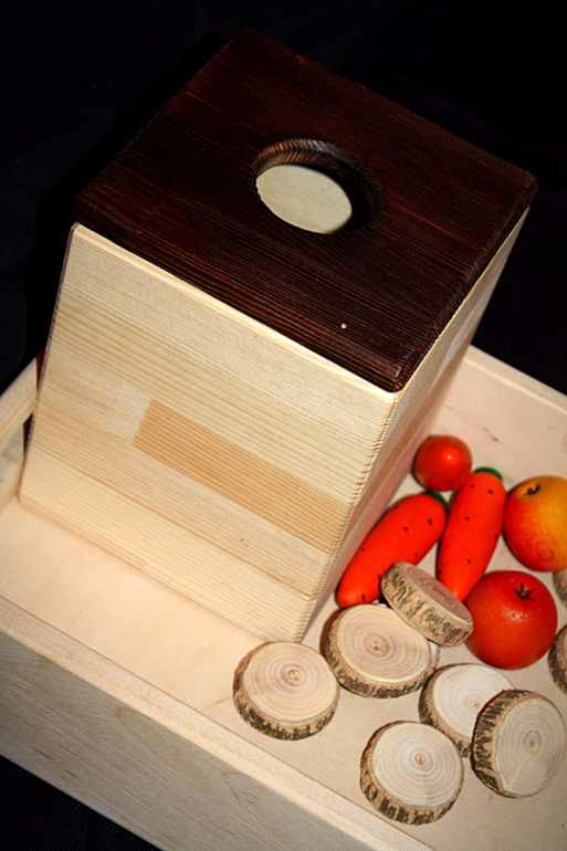 В комплекте вместительный короб + крышка на магнитах с дыркой + крышка на магнитах с прорезью (аля копилка) + 10 каштанов + 10 спилов сливы и вишни (аля монетки). 750 руб.