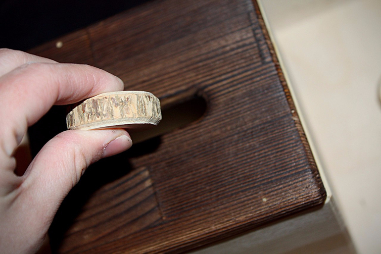 Так появилась идея 2х сменных крышек! Вторая для формирования щипкового захвата, аля положи монетку в копилку! А монетки у нас тоже не простые! Спилы, натуральные! Шершавые! Настоящие!! Очень удобные!