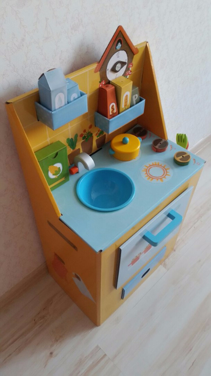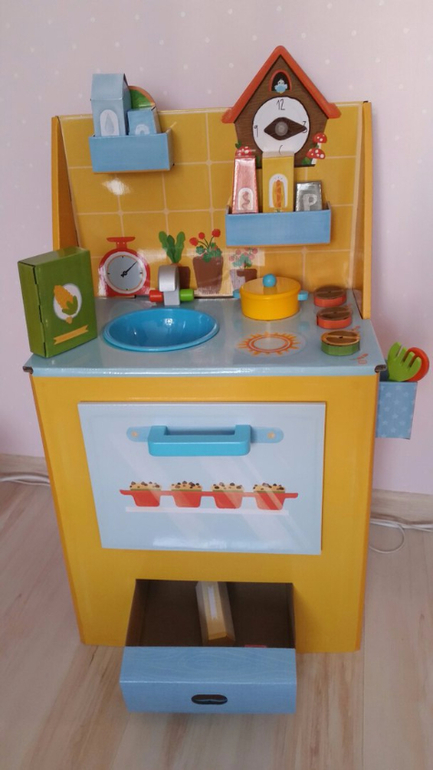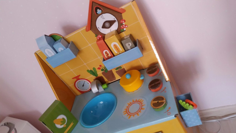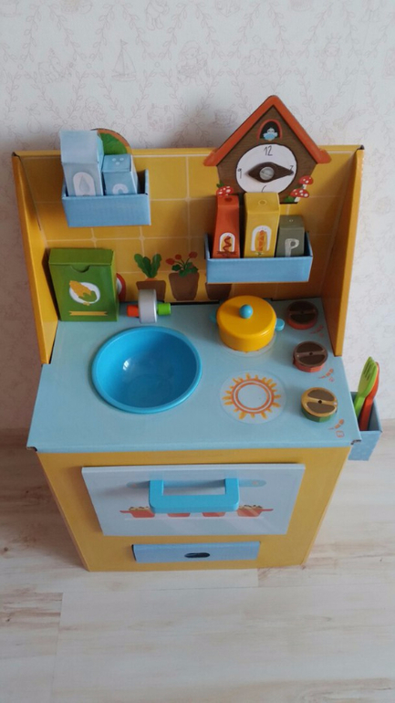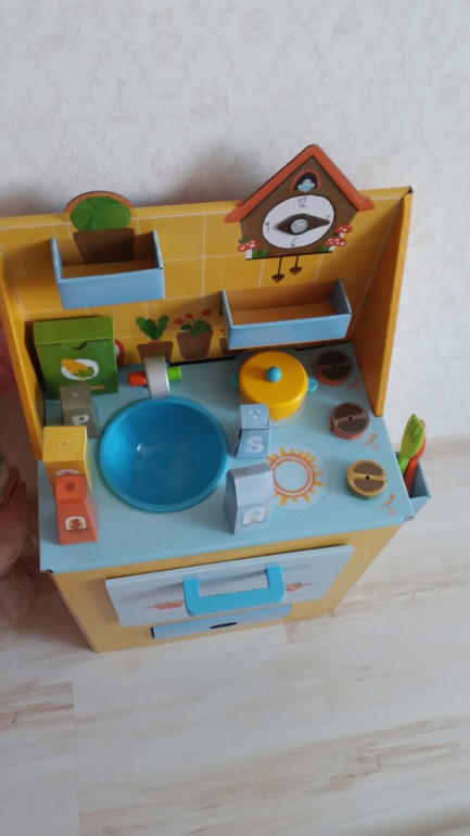 Дочкам понравилась, даже очень! Стрелочки на часах крутят, чтобы совпадало с настоящими)) Смеситель (кран), ручка духовки, ложка вилка и кострюлька деревянные - суперские!