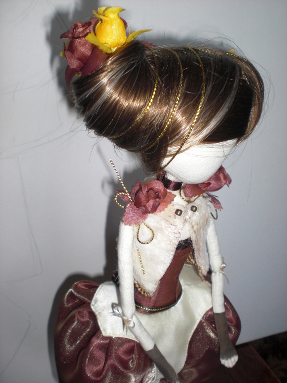 Эта куколка была выполнена на защиту Дипломного проекта. Кукла выполняет роль модельки, как демонстрационный объект.