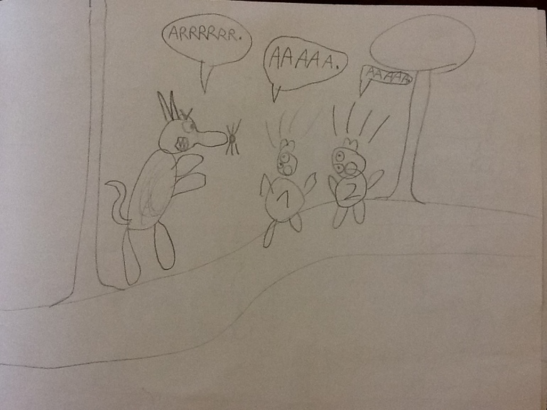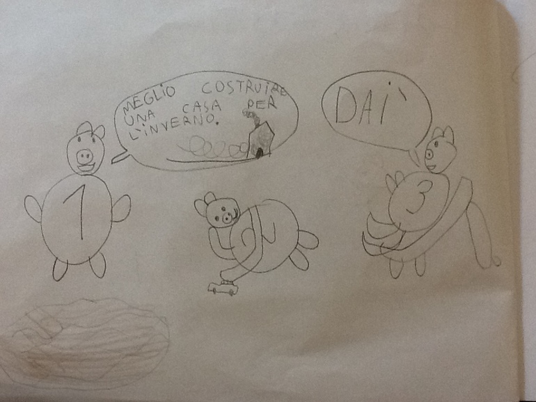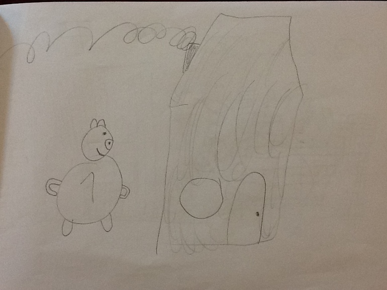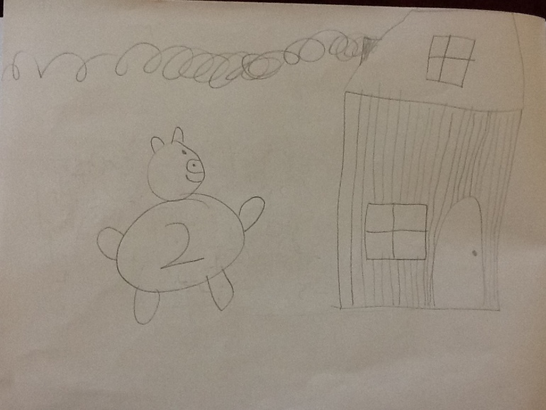 рисунОксВ последнее время Макс очень любит слушать сказу Три поросенка на русском языке, которую еще я слушала маленькая. В машине, дома... по многу раз. Тут на днях во время прослушивания сел за стол и стал что-то увлеченно рисовать. Потом показывает мне самодельную книгу: