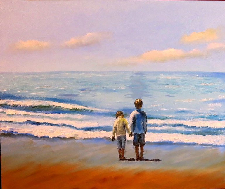 Сейчас делаю маленький эскиз, ну тоже полноценная картина, только небольшого формата, себе оставлю. Там будет море и двое детей смотрят на горизонт. Дети это Максим и его друг Матвей. Заказ для школы коррекции, куда Макс ходит.