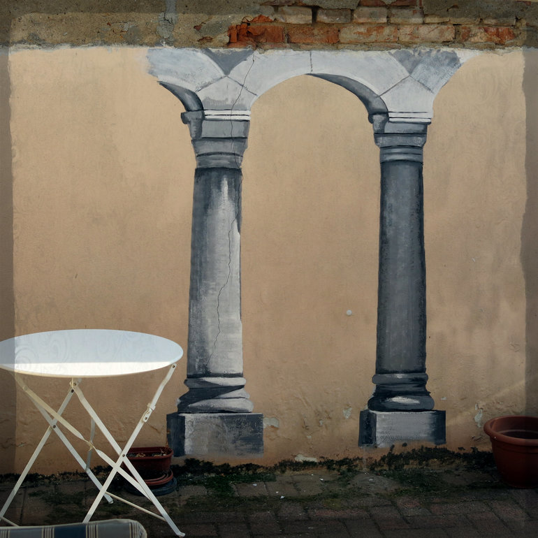 Попробовала на улице во дворе расписать нашу невзрачную стену. Посмотрим что будет после первого дождя. Если все будет ок, дальше планирую писать город-сад)