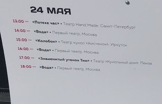 Кстати, у них не совпадает программа спектаклей с тем, что на сайте. Например завтра и в субботу такие спектакли(если верить афише у сцены):