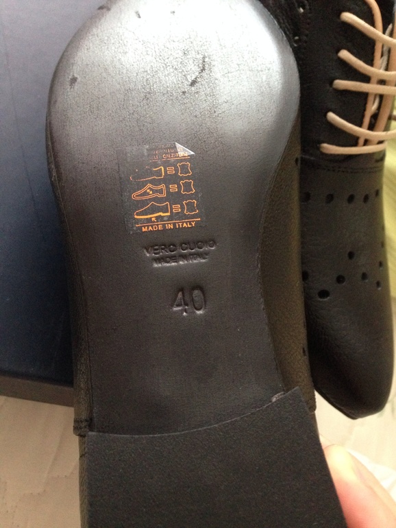 Заказала на yoox, но мне оказались малы в полноте, а так на нормальную или узкую ногу полный 40 р-р. Поностью натуральная кожа, made in Italy!!! Цвет указан черный, но по мне темно-темно коричневый.
