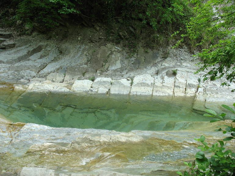 Эта коляска прошла с нами не одно восхождение в горы))))), видела дольмены, Абрау Дюрсо и скалу Парус)))) Ох, есть,что вспомнить холодными зимними вечерами! Очень полюбили мы ездить на реку Жане (каждый раз ездим) . Вход там, правда, платный… Наверно, как и везде у нас, где-то можно зайти и бесплатно… Но от парковки дорога ведет прямо к кассе)))) Россия-матушка))))) Всем надо заработать)))) Так вот туда надо идти любителям приключений и тяжелых испытаний))))) Остальным - лучше просто на пляж! Дорога там в гору, но есть места, где можно отдохнуть. Есть кафе с недорогим чаем и всякими вкусностями. Это туристическая тропа, поэтому тишины и покоя там не жди… Людей достаточно много, хотя смотря еще в какое время ехать: в конце мая -еще практически никого, в сентябре - уже практически никого, ну и утром народу меньше, чем к вечеру. Но места там ооооочень много и никто никому не мешает)))) Там же - дольмены!!! Все хотят их увидеть, потрогать, заглянуть в них… Т.е. прикоснуться к чему-то неизведанному…Еще дальше - водопады - не большие… но оооооочень красивые! Сами понимаете-горы, горная речка…дольмены... Эх, лепота!!!!