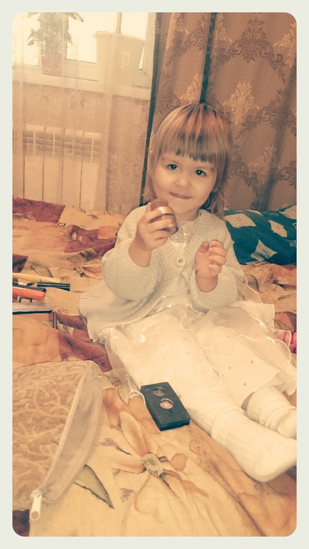 Машунюшка тоже подрастает))) Моя бесконечно ласковая крошечка))) Какие у неё ручки нежные! И прям вся такая девочка девочка! Попкой уже крутит не хуже чем Шакира, постоянно просит мои гигиенички, чтобы накрасить губки))) обязательно залезет в крем и намазюкает свои ручки, любит позировать на камеру и смотреть диск с её выпиской из роддома)))) Наверное песни ей нравятся там.