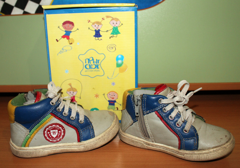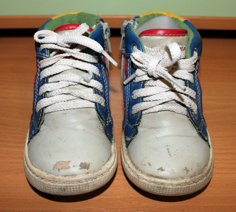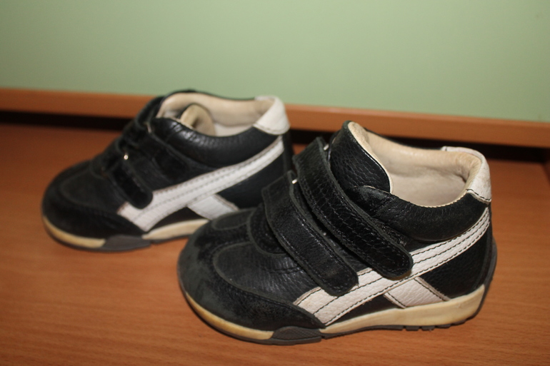 2). Кроссовки демисезон 21 размер по стельке 13,5см "Парижская Коммуна" полностью кожа - 600 500 рублей, коробка имеется. (Покупали за 1600). Сбиты мысы (можно закрасить чёрным кремом для обуви).